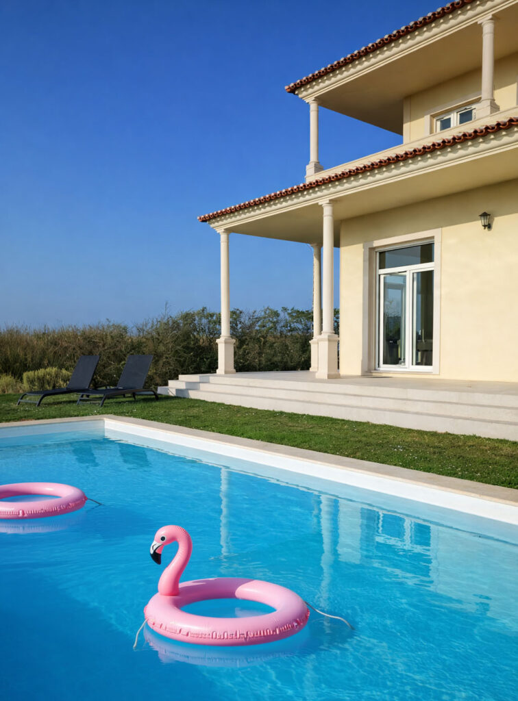 Le produit dominant du marché. Maisons T3 à T5 avec jardins de 300 à 2 000 m², souvent situées dans les villages de la commune ou à la périphérie du centre-bourg. Idéales pour une résidence principale, une retraite ou un télétravail à la campagne à 50 min de Lisbonne. C’est le meilleur rapport surface-prix de toute la Côte d’Argent. Rendement locatif brut longue durée : 5,0% à 6,2%.
