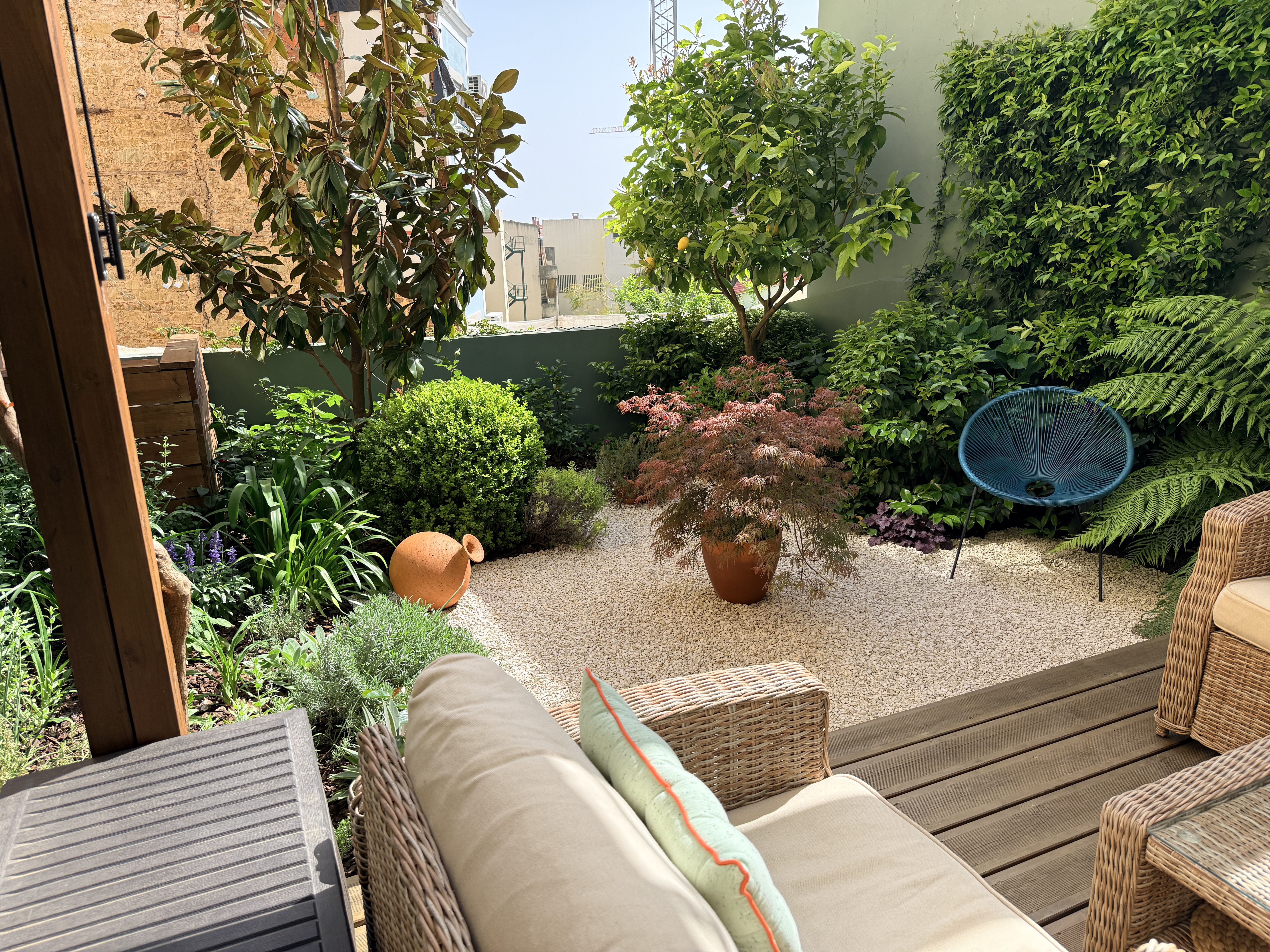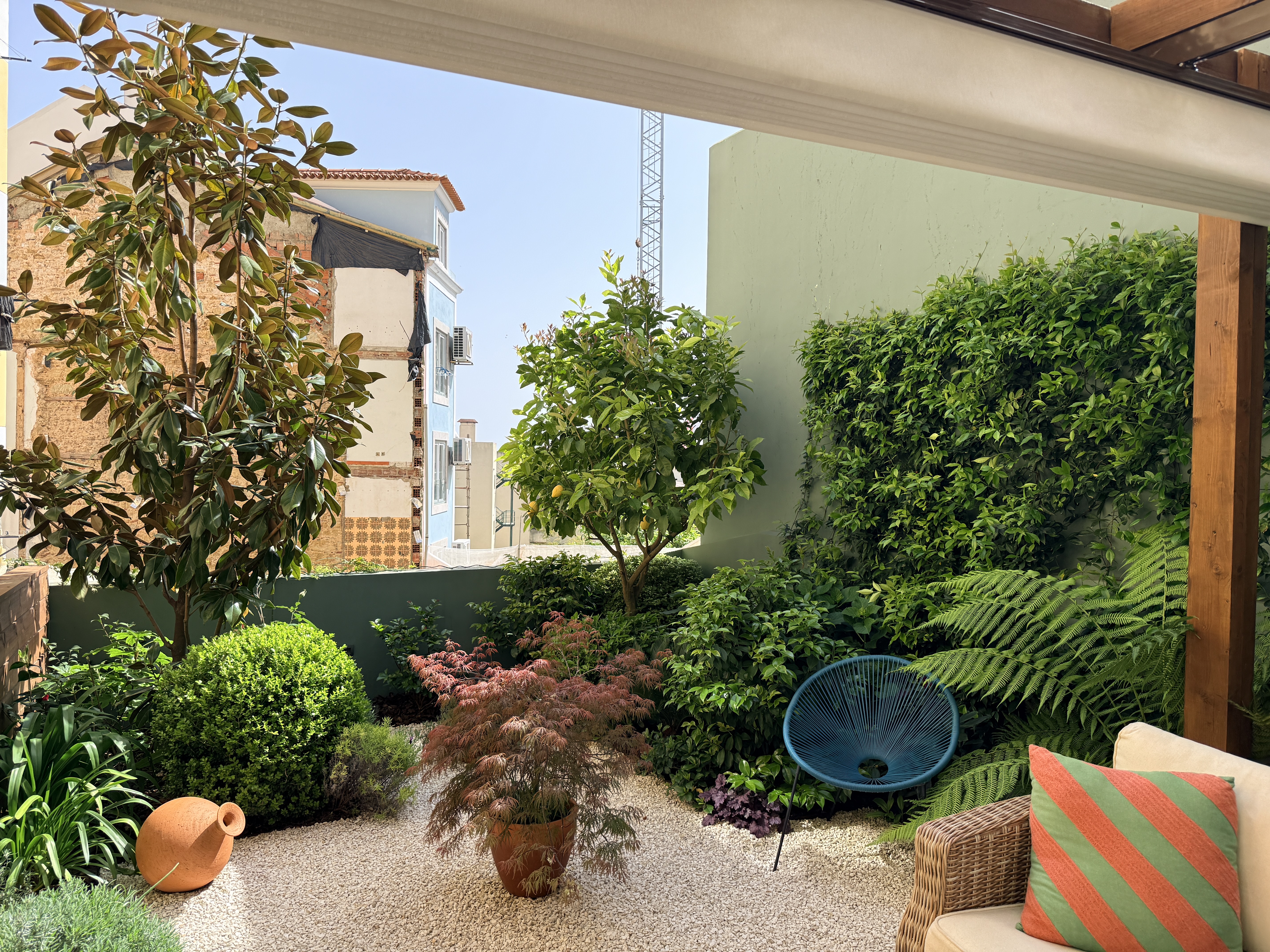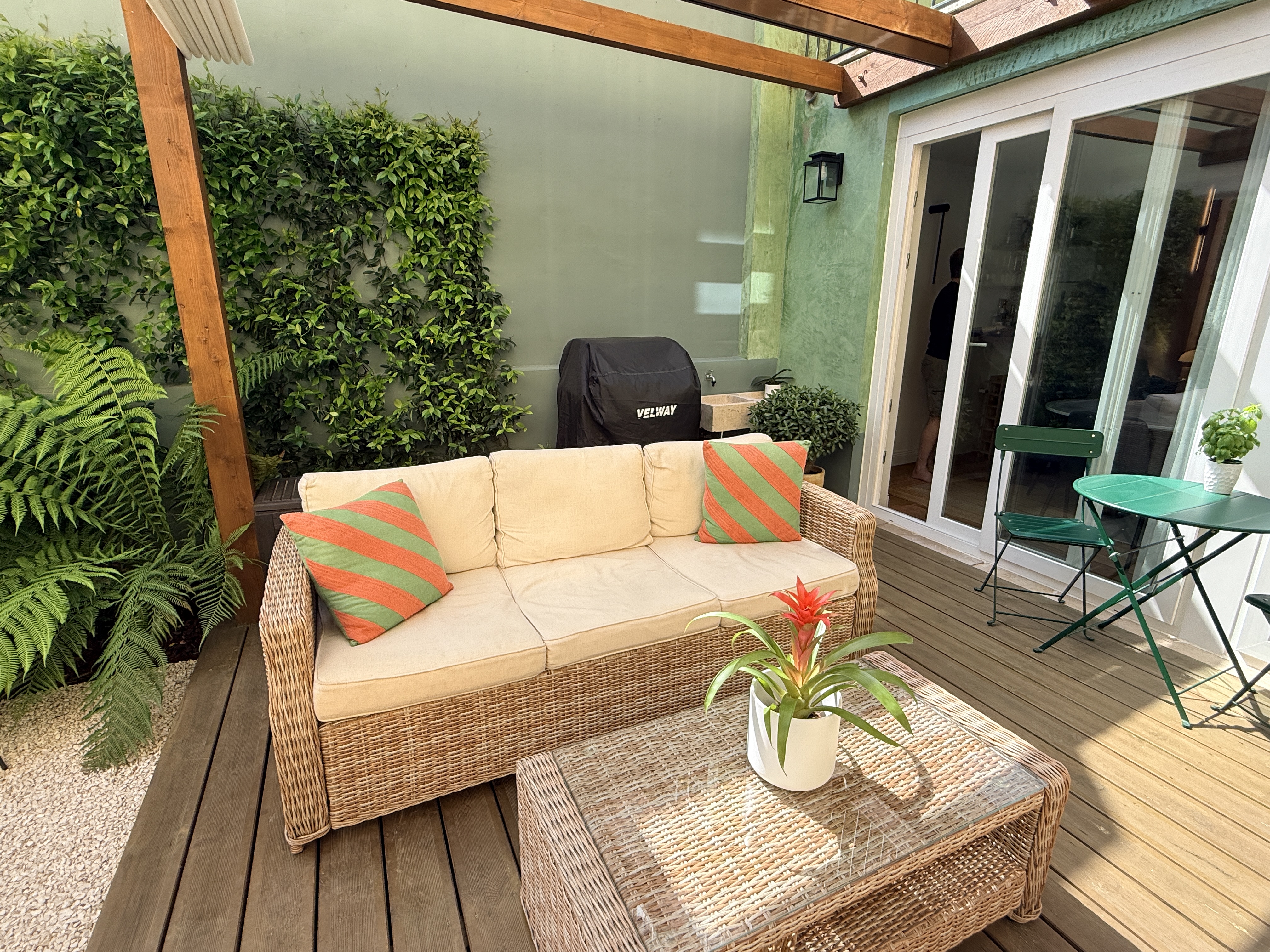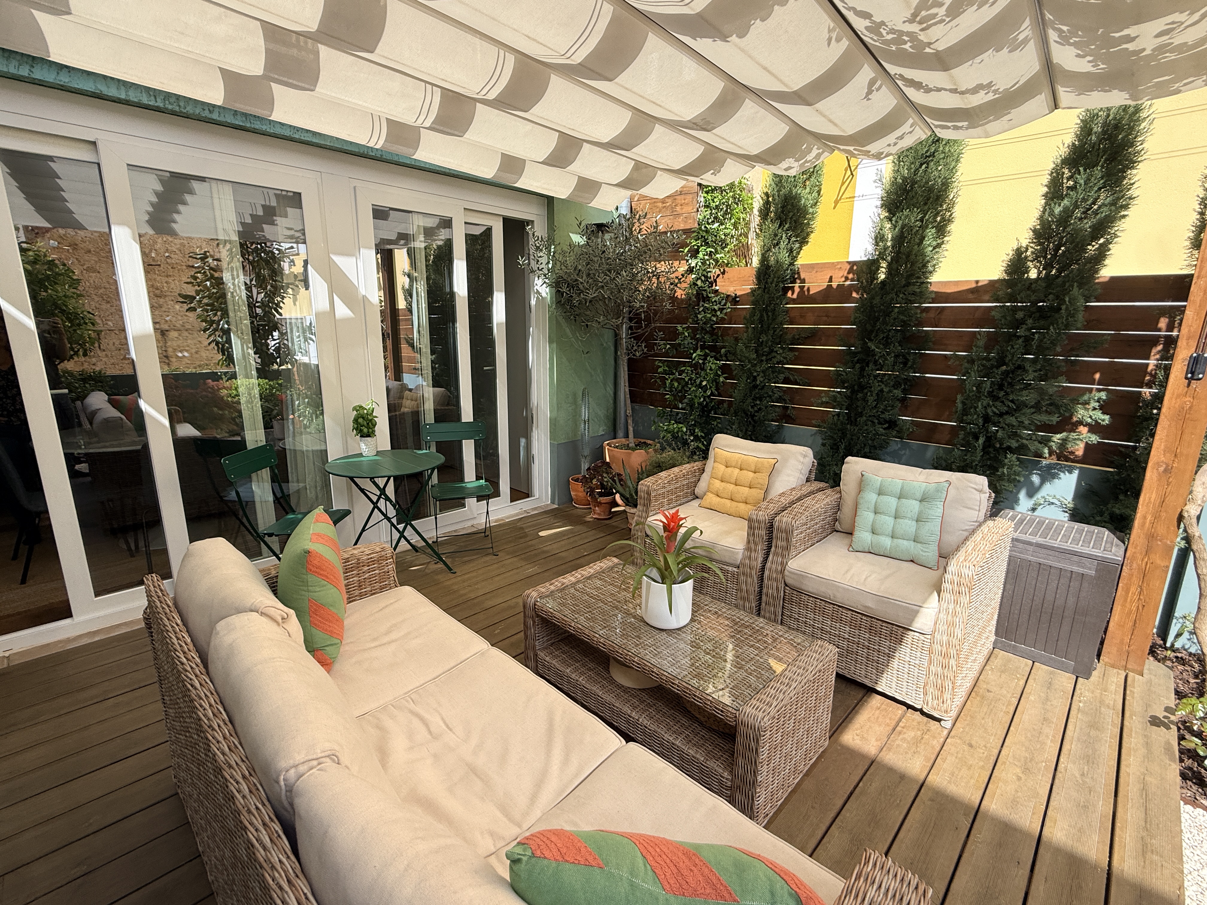 O grande protagonista é o jardim privativo desenhado por paisagista — um espaço intimista e envolvente, perfeito para pequenos-almoços ao sol, jantares ao final do dia ou simplesmente para desacelerar em pleno centro urbano. Um verdadeiro prolongamento da sala, onde a vida acontece ao ar livre.