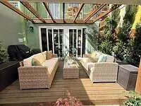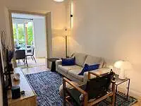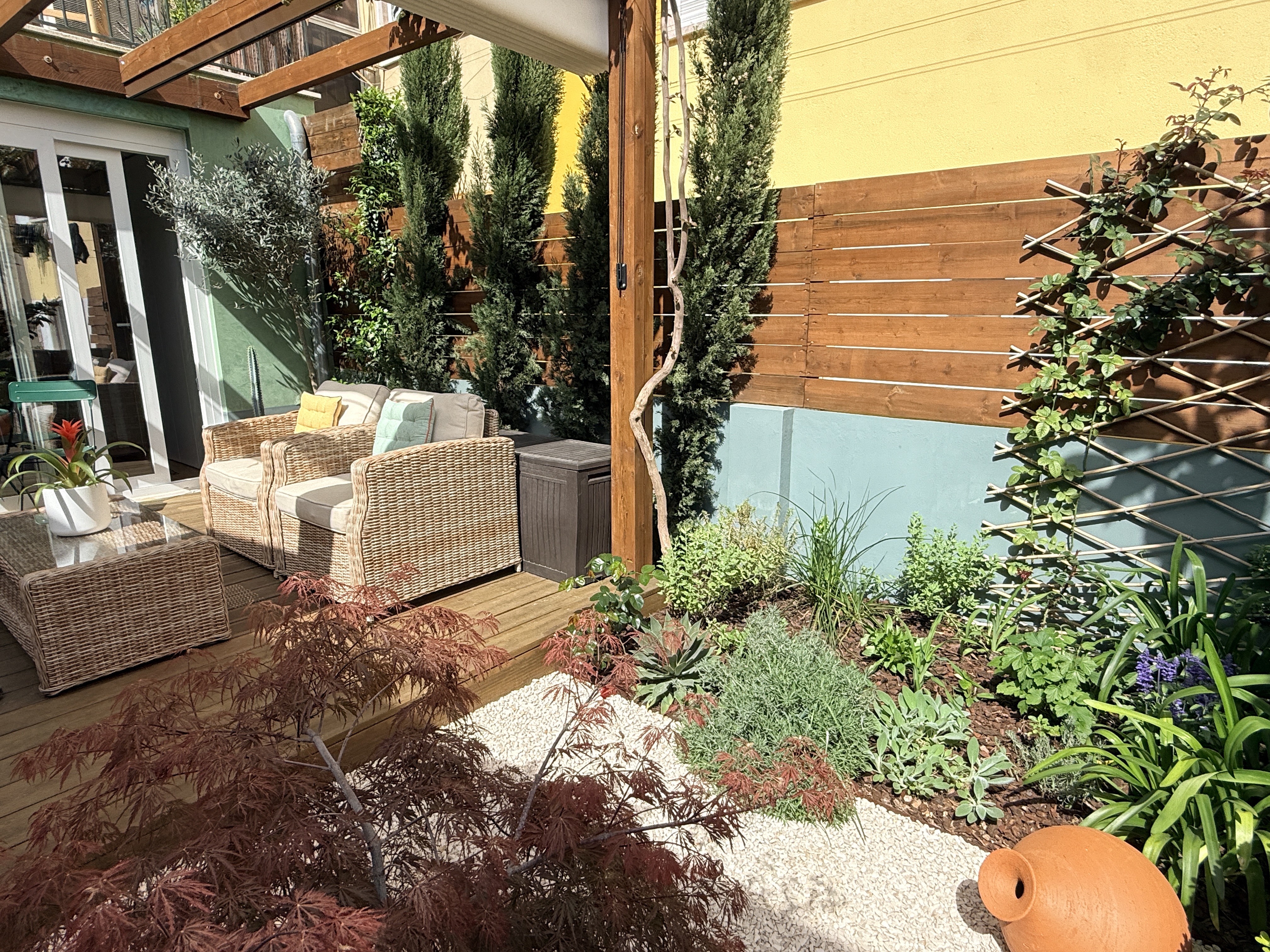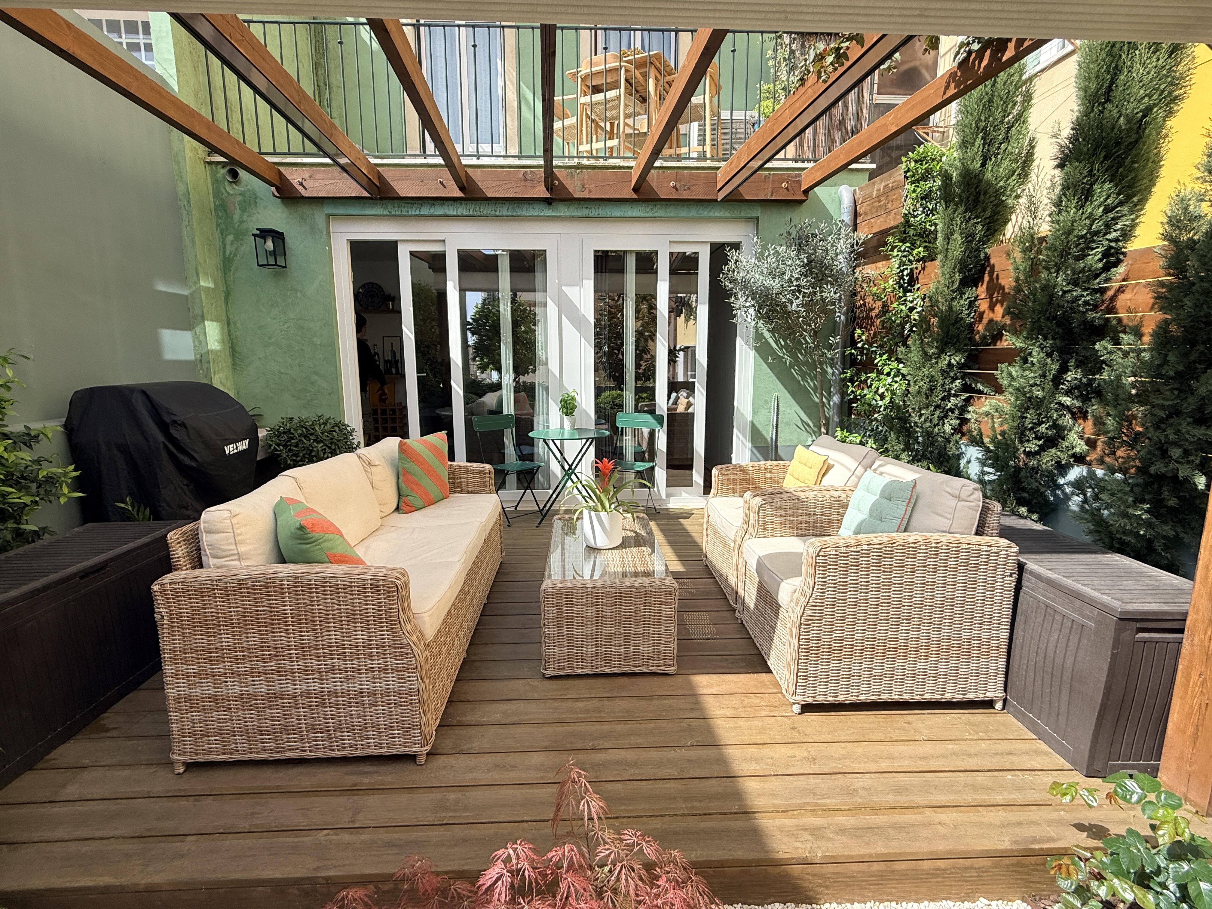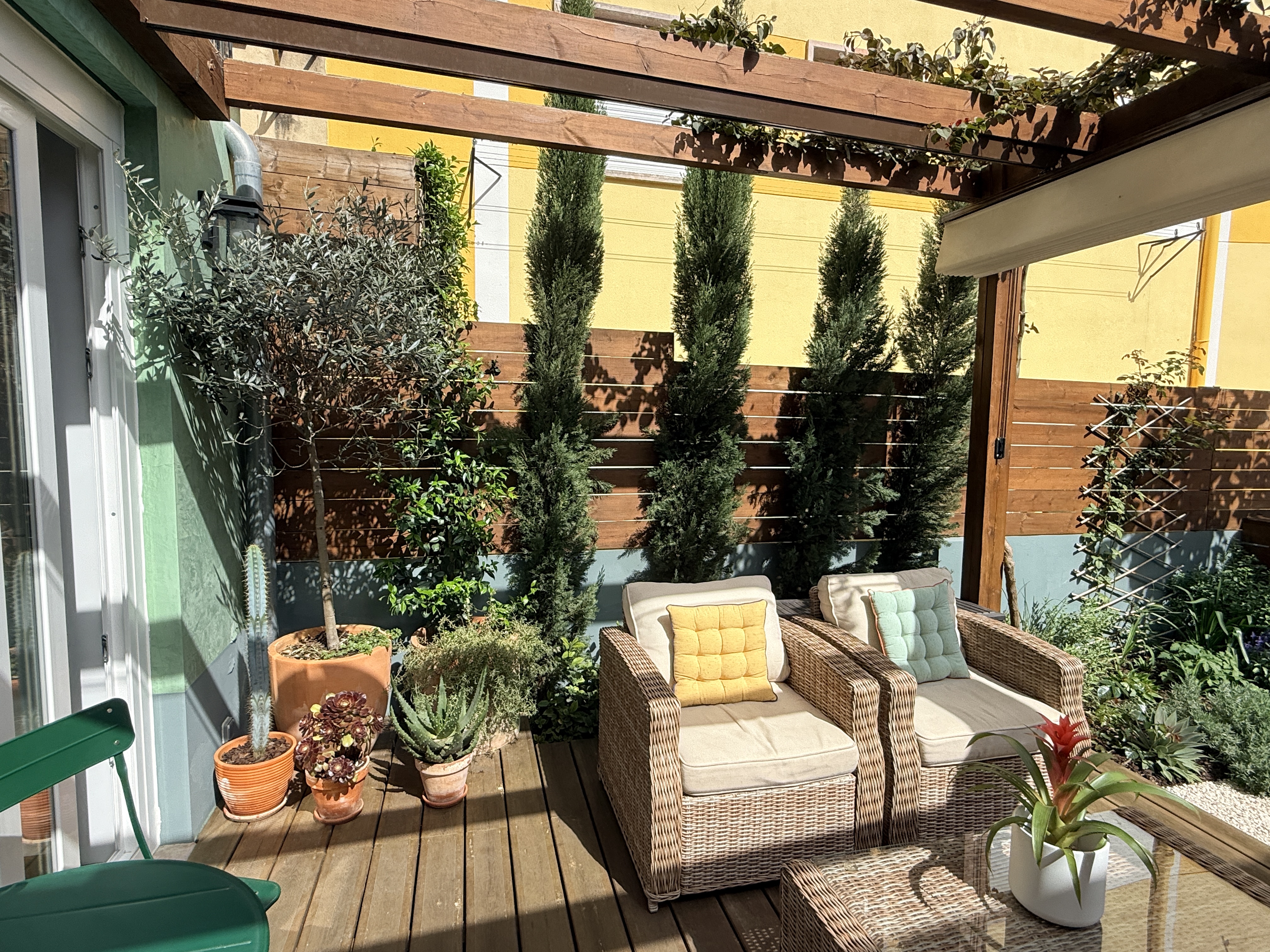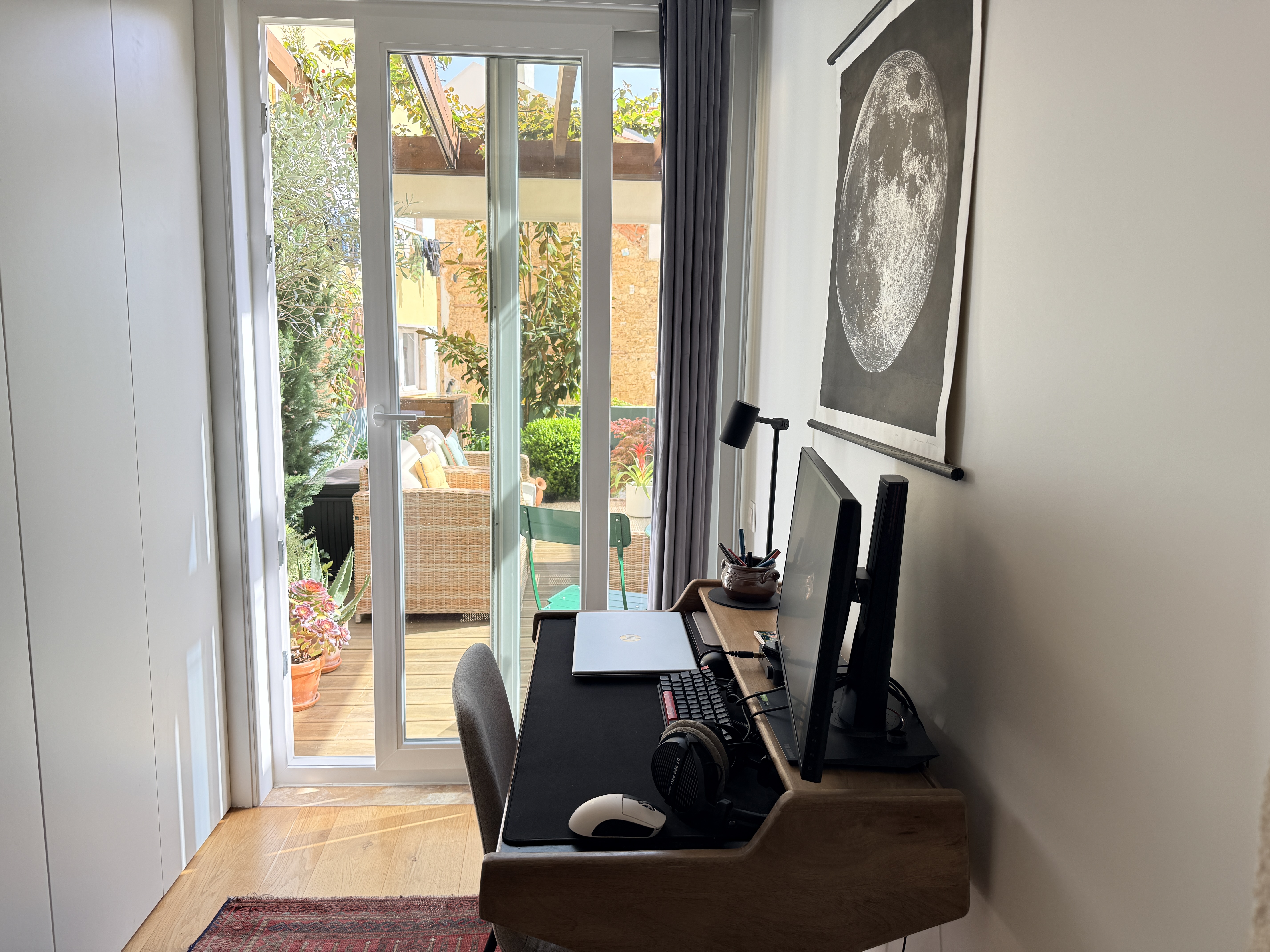 O grande protagonista é o jardim privativo desenhado por paisagista — um espaço intimista e envolvente, perfeito para pequenos-almoços ao sol, jantares ao final do dia ou simplesmente para desacelerar em pleno centro urbano. Um verdadeiro prolongamento da sala, onde a vida acontece ao ar livre.